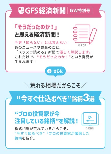 「GFS無料講座」や「投資の達人講座」など、無料オンライン講座に申し込む